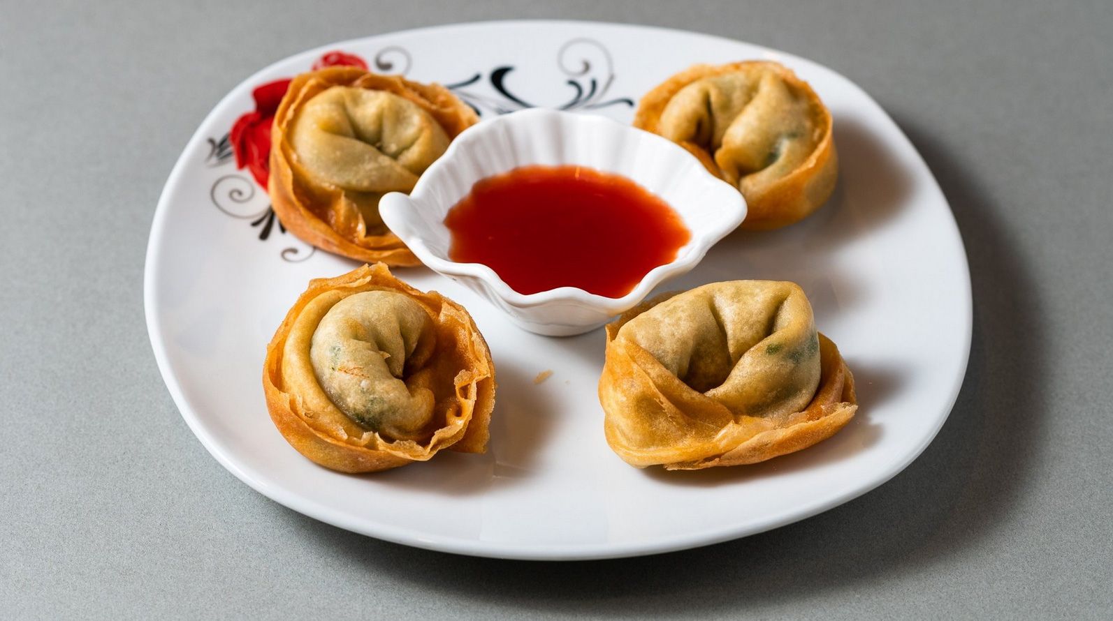 Χειροποίητα. Won ton με γέμιση κιμά χοιρινό. Συνοδεύονται από γλυκόξινη σάλτσα